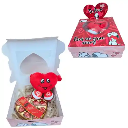 CAJA AMOR BOMBONES CORAZON HERARTS FOR YOU 12 UNID Y ´PELUCHE CORAZON 15CM