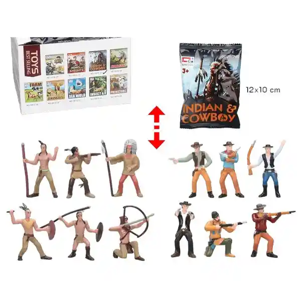 sorpresa de 12×10 cm, que contiene 1 figura de vaquero o indio para coleccionar. Con 12 modelos en total, 6 de cada uno, cada sobre te lleva a una nueva aventura en el Salvaje Oeste. ¿Qué valiente vaquero o indio se unirá a tu colección. Colecciónalos todos y crea emocionantes historias de duelos, exploración y vida en las vastas llanuras. ¡Deja que la diversión del Salvaje Oeste comience. Medidas: 12x10cm sobre