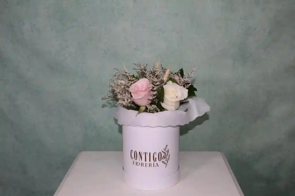 Arreglo de 7 Rosas de distintos colores acompañadas con Limoniúm y Ruscus