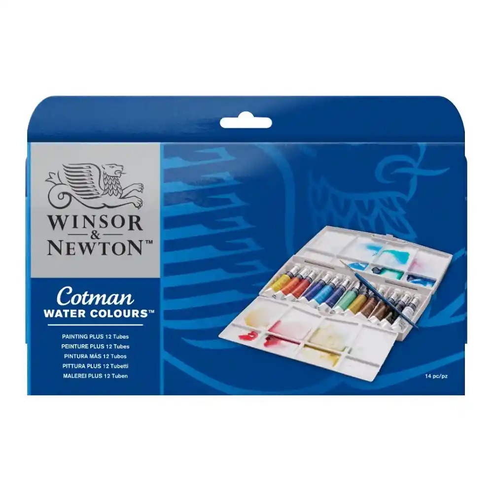 Un concepto similar al juego Half Pan, el juego de tubos Cotman Painting PLUS contiene: 1 x cepillo Cotman Series 111 No.3, 12 tubos de acuarela Cotman de 8 ml. Incluye: amarillo de cadmio, rojo pálido de cadmio, carmesí de alizarina permanente, ultramarino, azul cerúleo, azul prusiano, verde esmeralda, ocre amarillo, siena quemada, ámbar quemado, negro marfil, blanco china. El contenido real puede variar.