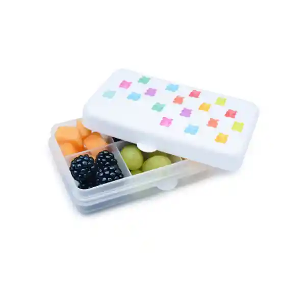 La caja Snackle Box Mini de Melii es perfecta para los paseos y viajes con tus niños. Cuenta con 6 compartimentos individuales, y un divisor extraíble, lo que crea un espacio de almacenamiento personalizable para una variedad de deliciosos snacks. Diseñado y pensado en la comodidad, Snackle Box garantiza que las colaciones favoritas de tu hijo estén perfectamente organizadas y sean de fácil acceso. Los compartimentos individuales mantienen los snacks separados, evitando que se mezclen o aplasten. Además, los divisores extraíbles permiten opciones de almacenamiento versátiles y acomodan refrigerios grandes y pequeños. Ideal para viajes, salidas familiares, almuerzos escolares y viajes por carretera. Snackle Box Mini proporciona una experiencia divertida y atractiva para los más pequeños. 100% plástico apto para alimentos. 6 compartimentos individuales para snacks. 1 divisor extraíble para tamaños de refrigerios versátiles. Fácil de abrir y cerrar, perfecto para los dedos pequeños. Aptas para el lavavajillas. Capacidad del compartimento: 4oz/114ml cada uno.