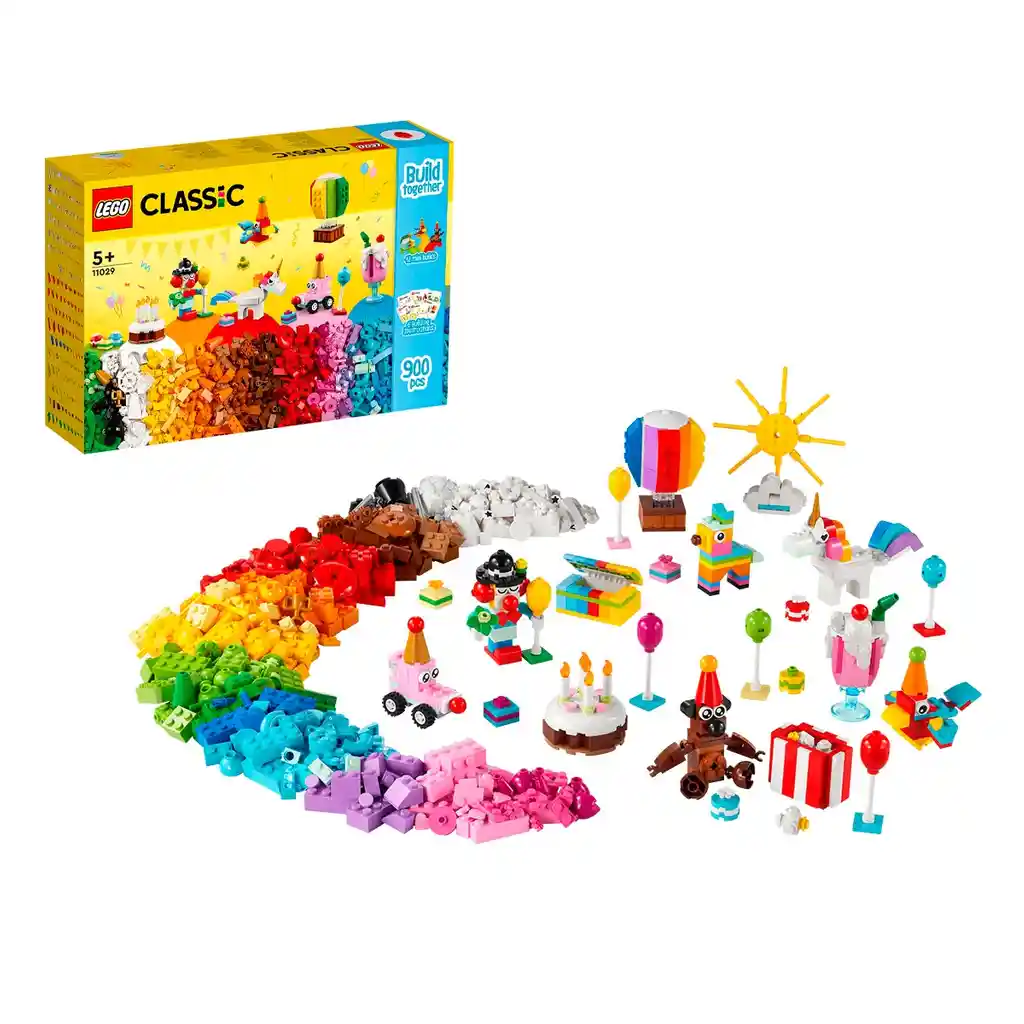 Pon a prueba las habilidades constructivas de tu pequeño con este entretenido set de Caja Creativa Fiesta de Lego Classic. Esta llamativa y colorida mezcla de 900 ladrillos agrupados en 6 bolsas, donde cada una contiene los ladrillos necesarios para construir 2 sencillos modelos como un osito de peluche, un payaso, un unicornio, una piñata, un arcoíris, una tarta, palomitas, globos y pequeños regalos ya que, además, incluye claras instrucciones de construcción en formato impreso. Este es un juguete que desarrolla las habilidades creativas y la destreza, fomentando a que creen un juego imaginativo promoviendo la historia de fantasía, el juego de rol y desarrollar nuevas habilidades y hobbies. SKU Lego 11029.