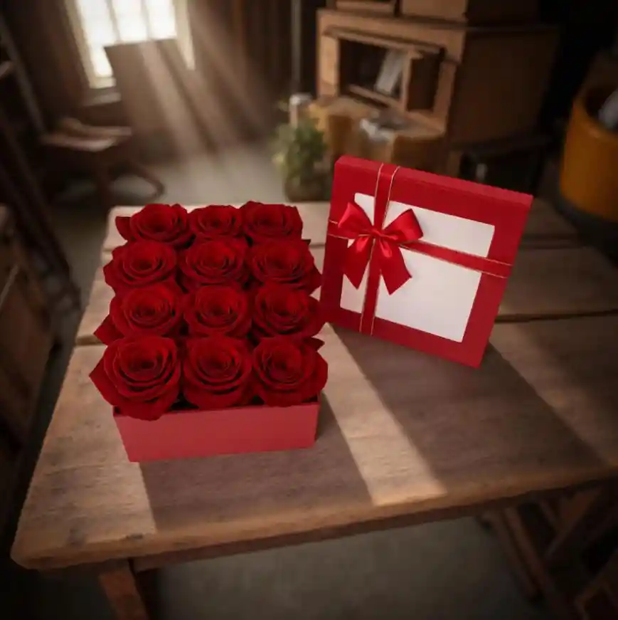 HERMOSA CAJA CUADRADA 16 ROSAS PARA REGALAR EN CUALQUIER OCASIÓN