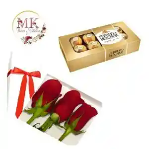 Caja De 3 Rosas Y Bombones Ferrero Rocher 100grs