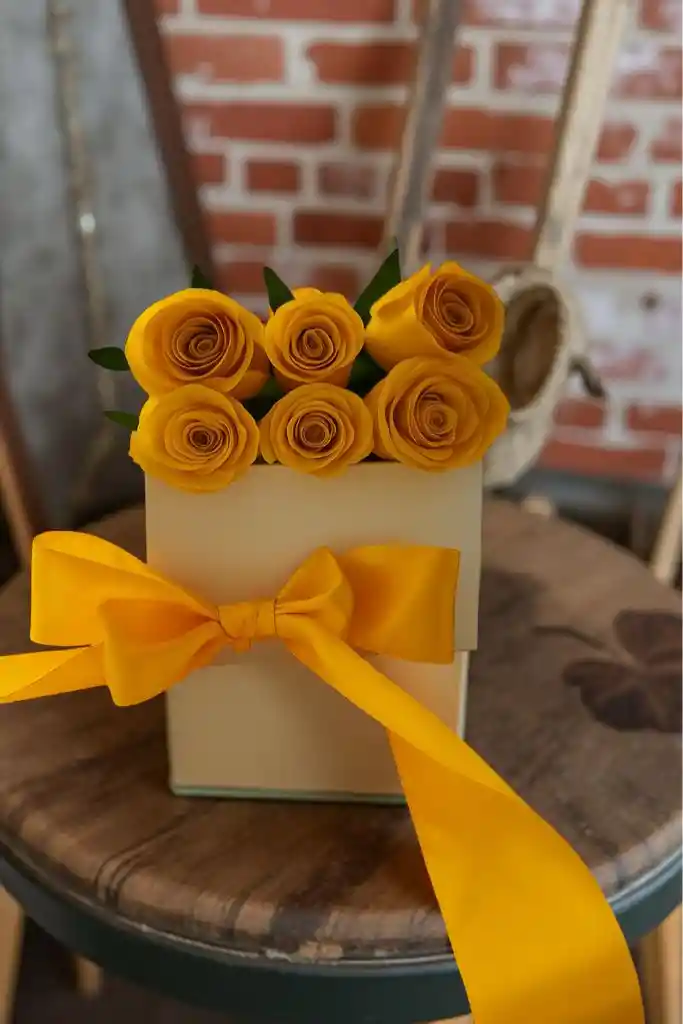 HERMOSA CAJA DE 6 ROSAS AMARILLAS PARA REGALAR EN CUALQUIER OCASIÓN
