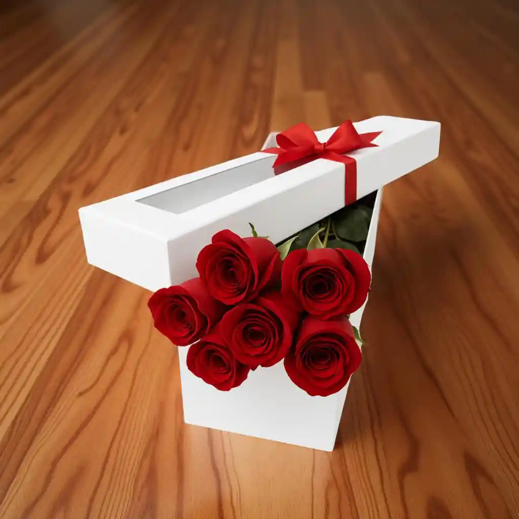 HERMOSA CAJA DE 6 ROSAS ROJAS PARA REGALAR EN CUALQUIER OCASIÓN