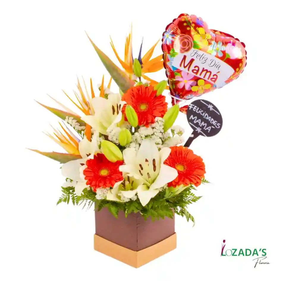 Sorprende a quien te dio la vida con un regalo lleno de amor y belleza. Nuestra Caja de Regalo "Feliz Día Mamá" combina la frescura de flores mixtas cuidadosamente seleccionadas en una elegante presentación, acompañadas de un globo especial que celebra este día único. 🌸 Incluye: Caja de lujo en tono neutro o pastel. Arreglo floral mixto con flores de temporada Globo inflado con helio "Feliz Día Mamá" (medida estándar). 🎁 Ideal para: Regalar emociones verdaderas en el Día de la Madre. Sorprender en casa, en el trabajo o en cualquier lugar especial. 💬 Personaliza tu regalo: Incluye un mensaje personalizado para hacerlo aún más especial. Solo escríbelo al momento de tu compra.
