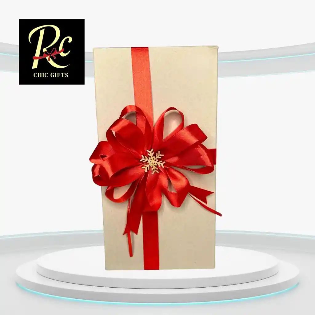 ¡Envuelve tus regalos con un toque de sofisticación y espíritu festivo con nuestra exclusiva Caja de Regalo Premium con Lazo Rojo y Copo de Nieve, disponible solo en Regalos Chic! Esta hermosa caja, con unas medidas ideales de 15 cm de ancho, 28 cm de largo y 10 cm de alto, es perfecta para una amplia variedad de obsequios, desde ropa y accesorios hasta libros o electrónicos pequeños. Su acabado kraft neutro se complementa a la perfección con una vibrante cinta de satén rojo anudada en un elegante lazo, adornado con un delicado copo de nieve dorado. ¿Buscas una forma de hacer que tu regalo sea inolvidable desde el primer momento? Nuestra Caja de Regalo Premium de Regalos Chic es la elección ideal. Es la solución perfecta para quienes buscan una presentación impecable sin el estrés de envolver. Ideal para regalos de Navidad, cumpleaños, aniversarios, o cualquier ocasión especial que requiera un empaque distintivo y lleno de encanto. ¡Asegura una presentación que impresione tanto como el regalo mismo! Características Principales: Medidas Versátiles: 15 cm de ancho x 28 cm de largo x 10 cm de alto, ideal para múltiples tipos de regalos. Acabado Premium: Color kraft natural que aporta un toque rústico y elegante. Lazo de Satén Rojo: Lujosa cinta que añade un contraste vibrante y festivo. Detalle de Copo de Nieve Dorado: Un adorno delicado que evoca la magia de la temporada. Estructura Resistente: Protege tu regalo y garantiza una presentación impecable. Listo para Regalar: Viene pre-ensamblada y decorada para tu conveniencia. Beneficios Clave: Realza la presentación de tus regalos: Transforma un obsequio en una experiencia memorable. Ahorro de tiempo y esfuerzo: Evita la necesidad de envolver y decorar manualmente. Versatilidad de uso: Adecuada para diversas celebraciones y tipos de regalos. Impacto visual garantizado: El diseño y los colores capturan la atención instantáneamente. Calidad superior: Materiales y acabados que reflejan distinción y buen gusto. Exclusivo de Regalos Chic en Chile: Un empaque único que no encontrarás en cualquier lugar. ¡No esperes más para darle a tus regalos la presentación que se merecen con nuestra Caja de Regalo Premium con Lazo Rojo y Copo de Nieve (15x28x10cm), disponible exclusivamente en Regalos Chic en Vitacura, Santiago! ¡El empaque perfecto para momentos inolvidables!
