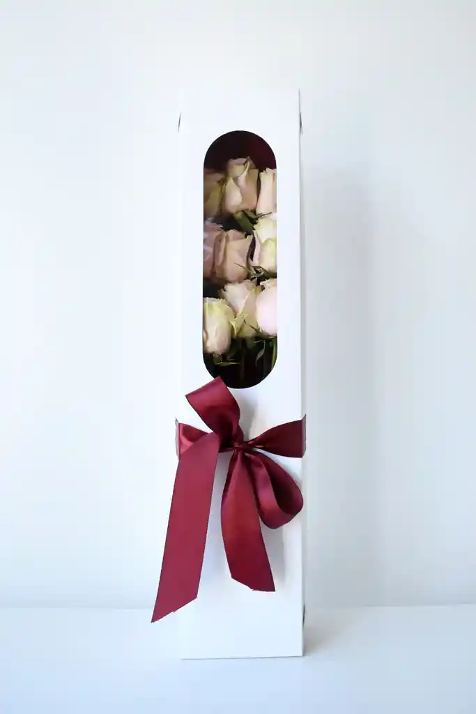ELEGANTE CAJA DE 9 ROSAS EN TONO ROSADO
