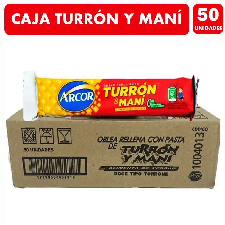 - El turrón de maní de la marca Arcor, consiste en dos obleas rellenas de pasta de turrón y maní, que combinadas logran un sabor inigualable. -Esta caja contiene 50 exquisitas Obleas de 25 gr cada uno, envueltas en un formato individual ideal para entregar a tus amigos o familia a la hora de compartir un delicioso dulce. - Además, todos nuestros productos son renovados constantemente, para garantizar su frescura a la hora de tu compra.