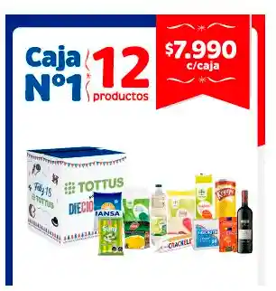 Contenido: -Papas Fritas Kryzpo Original 140g -Fideo Spaghetti N°5 400g Tottus -Salsa Italiana Doypack 200g -Galleta Crackelet Costa 85 g -Arroz Tottus G2 Largo Fino 1kg -Durazno Tetra Conserva Recart 380g -Aceite Vegetal Tottus 990mL -Harina Tottus Sin Polvo 1kg -Azucar Granulada Iansa 750g -Servilleta Clasica Favorita Cocktail 50Un -Vino 120 3 Medallas Tinto 700cc 13.5°Gl -Caluga Sunny 130g