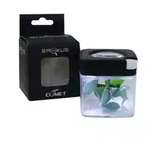 Smokus Focus Comet Frasco hermético Consta de una lupa en la parte superior de la tapa además de un botón de encender y apagar la luz led. -Magnificación del lente 5x -Tamaño 53mm x 53mm -Luz Led -100% Hermético – Almacena 3.5 grs – Tipo de Batería: LR927