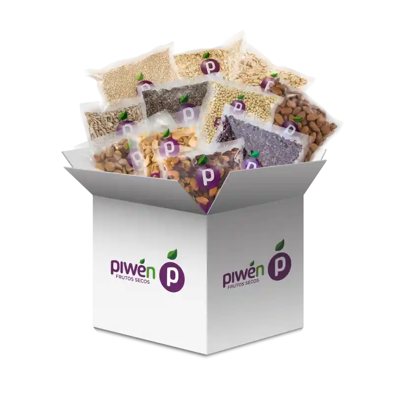 Avena Integral 1kg Maní Sin Sal 1kg Quinoa 500gr Almendras 500gr Maravilla 250gr Chía 250gr Quinoa Pop 250gr Garbanzos Fritos Salados 250gr Cacao Nibs 250gr Mix Piwén 250gr Manzana Chips 40gr