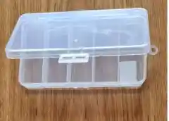 CAJA MOSQ S.WAVE 5 COMP / Caja para señuelos, aparejos, cebo … / Marca Silver Wave / Modelo ZY061 / Con 5 gavetas separadas / Largo 9 cms / Ancho total 16 cms / Ancho cada gaveta 3 cms / Alto cada gaveta 2 cms / Peso 55 grs / Color Trasparente / Material PVC / Cierre doble a presión / Ojetillo lateral