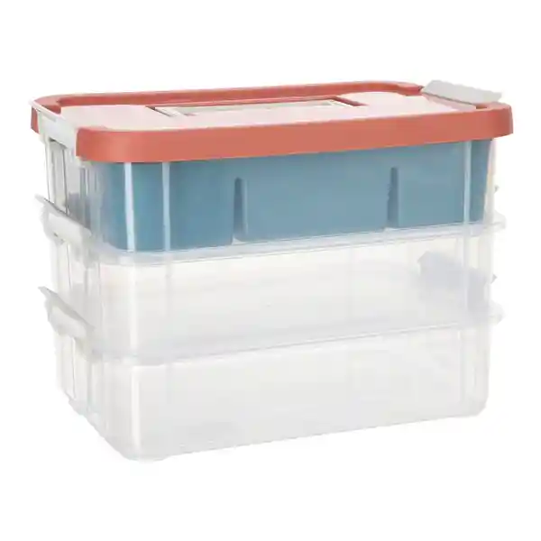 Multifuncional de Plástico Polipropileno Con 3 Compartimientos Apilables y Bandeja Con Divisiones. Tiene un Tamaño de 275 x 18 x 195 cm.