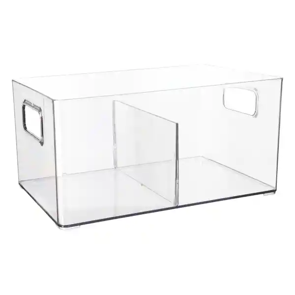 Transparente Con Dos Divisiones. Tiene un Tamaño de 31 x 15 x 10 cm.