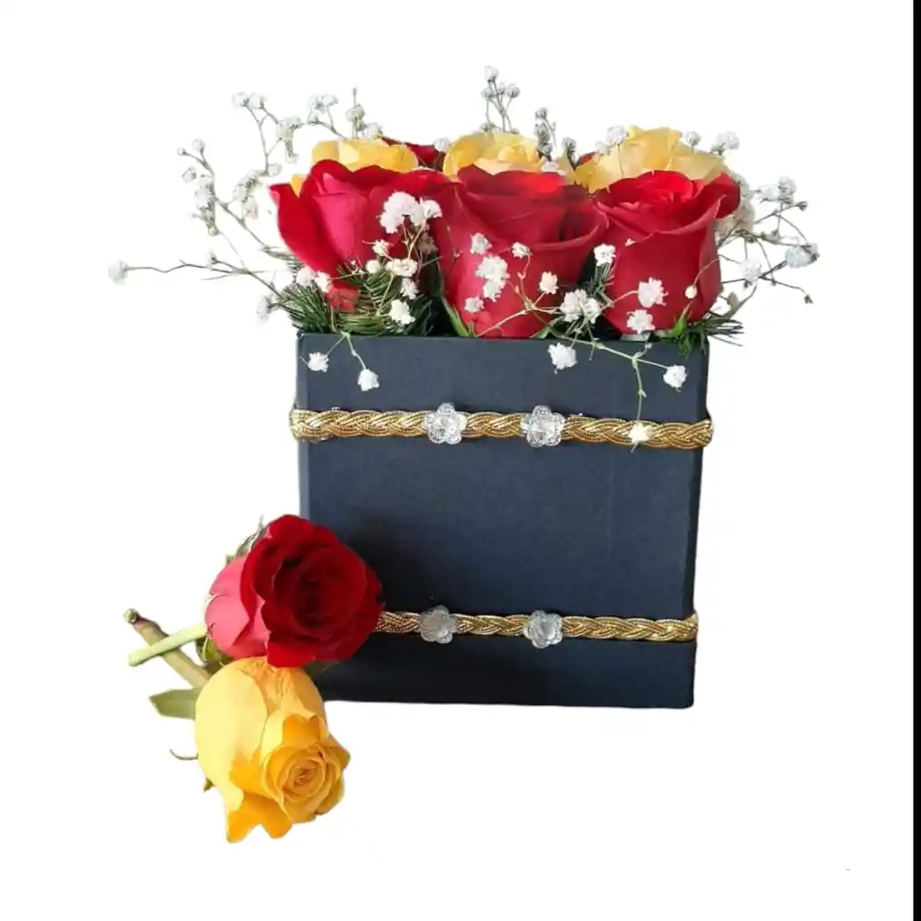 Caja pequeña de 06 rosas, puede ser de un color o dos colores según stock (blanco, roja, amarilla y rosada)