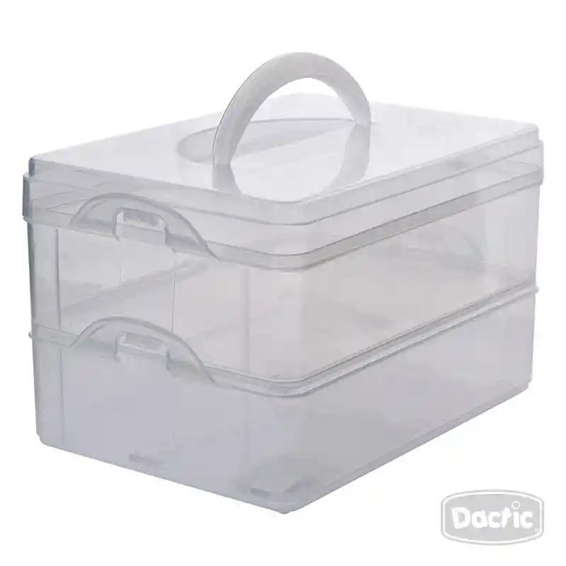 Cajas de plástico montables que permites contener, guardar, conservar y transportar elementos de manera segura. Contiene dos unidades. Medidas: 21 x 14 x 13 cm aproximadamente.