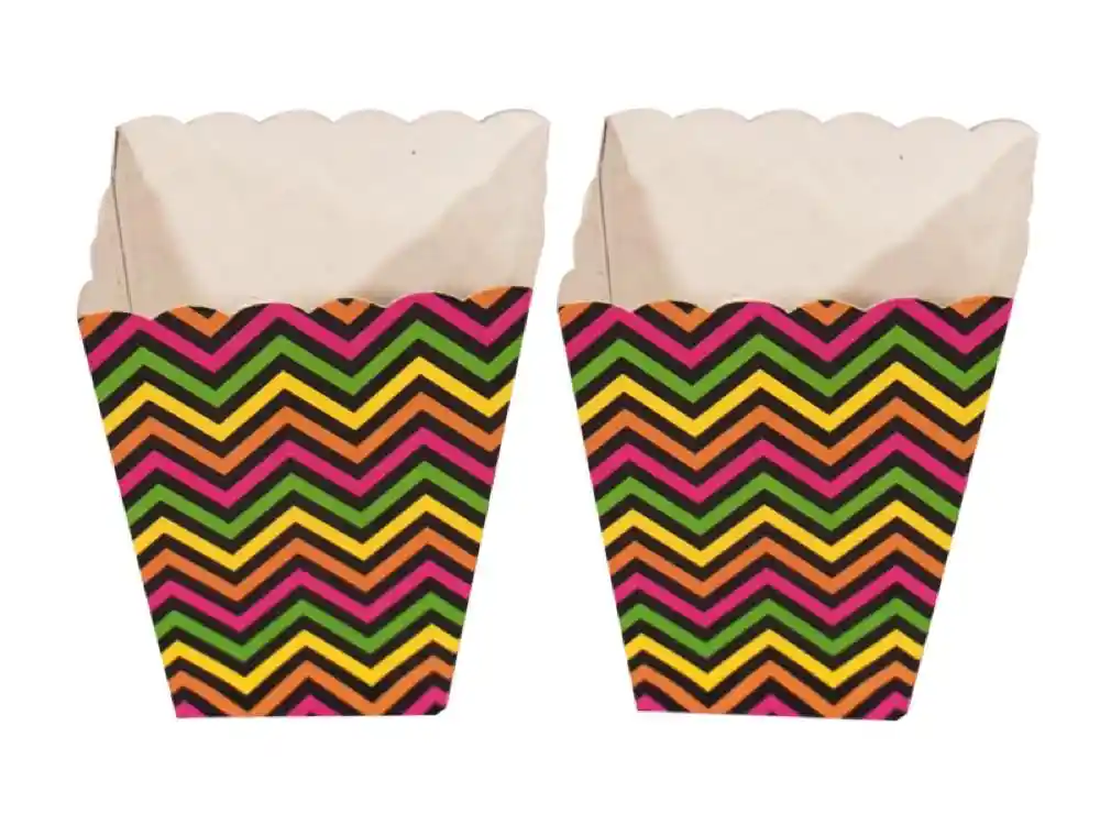 FIESTA CUMPLEAÑOS LINEAS PREMIUM CAJA POPCORN CHEVRON NEON X 10