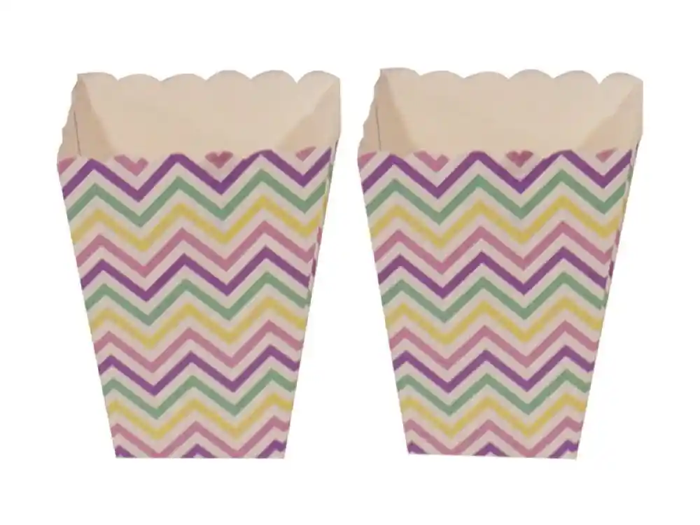 FIESTA CUMPLEAÑOS LINEAS PREMIUM CAJA POPCORN CHEVRON PASTEL X 10