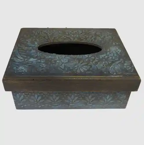 Caja porta pañuelos Color: Negro con dorado Material: Madera Medidas: 7 x 19 x 15 cm (alto x largo x profundidad)
