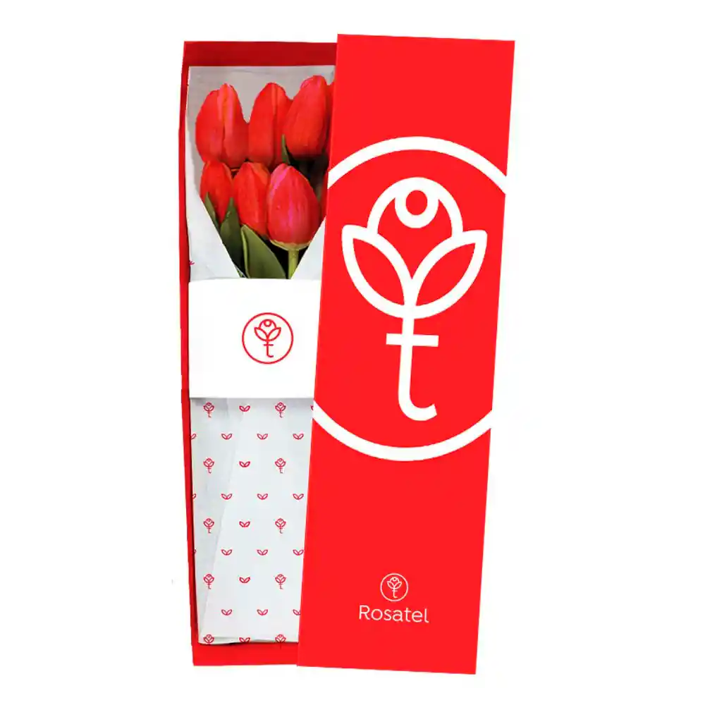 Caja Roja R40 con 6 Tulipanes Variados