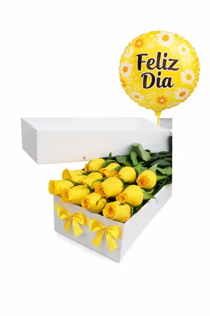 Caja visora de 12 rosas y globo