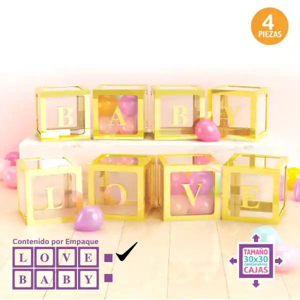 CAJAS "LOVE" TRANSPARENTE 30 X 30 CM 4 UNIDADES