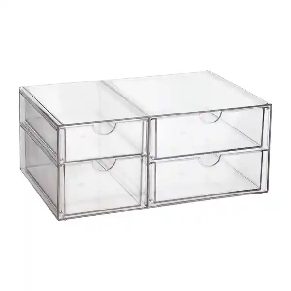 Con 4 Cajones de Plástico Transparente Pet. Compatible Con Bandejas Organizadoras. Tiene un Tamaño de 255 x 175 x 105 cm.