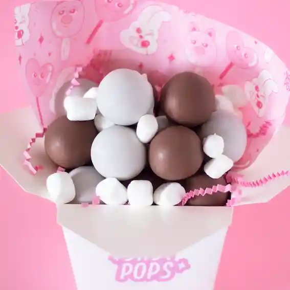 Exquisita masa de bizcocho con sabores mixtos (Manjar, Berries, selva negra y choco torta). Cubiertos de chocolate blanco y chocolate de leche