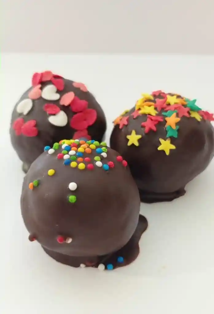 Preparación en base a brownie y queso crema o galleta y manjar, bañados con delicioso chocolate y decorado con sprinkles variados. Ideal para niños y niñas