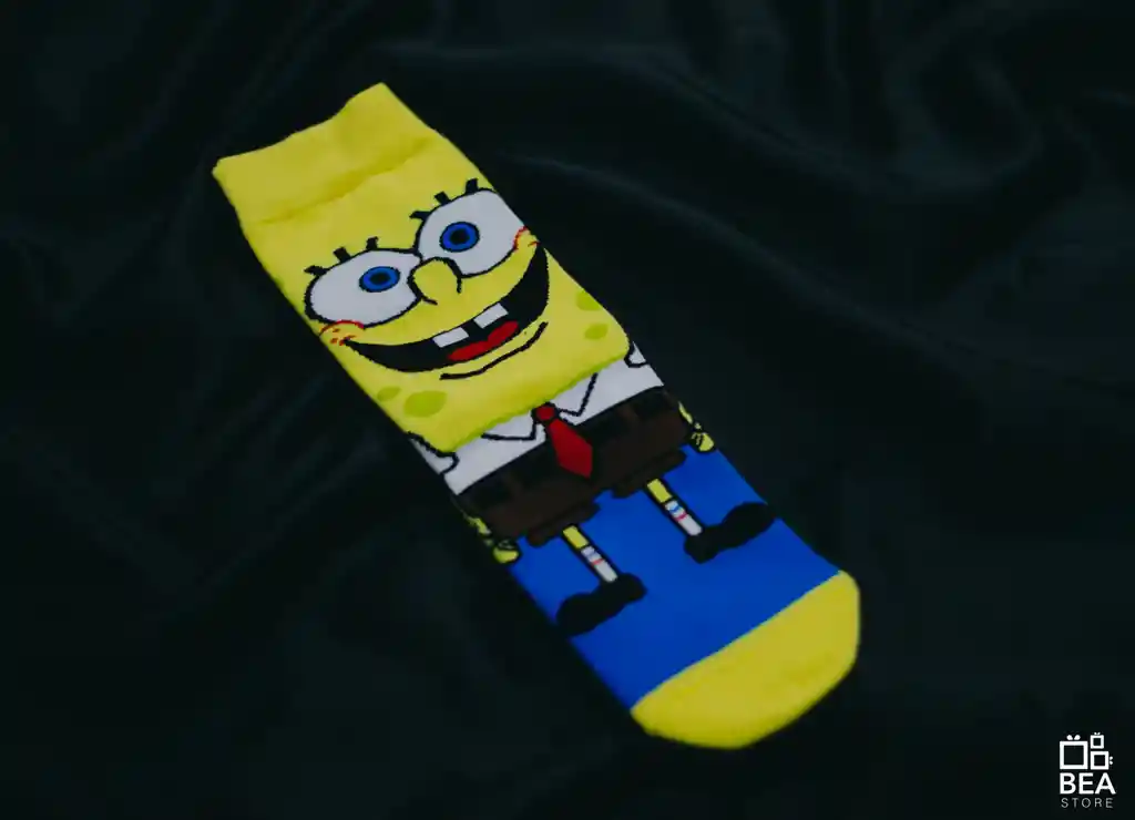 Calcetín Bob Esponja Diseño Bordado Algodón 80% El diseño corresponde a un par (1 calcetín derecho y 1 calcetín izquierdo)