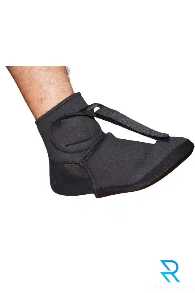 "CALECETÍN DE NOCHE PARA FASCITIS PLANTAR **PRODUCTO VIENE POR UNIDAD** CARACTERISTICAS: COLOR: Negro FUNCIÓN: Alivia las molestias asociadas a la fascitis plantar, ya que favorece la circulación sanguínea y reduce los edemas y el cansancio del pie. OTRAS CARACTERISTICAS: Sirve para dolores en espolón calcáneo, dolores de talón e hinchazones. El soporte para usar de noche ayuda a aliviar el dolor en los pies por las mañanas, ya que mantiene el pie en una posición neutral que estira la fascia plantar, y permite una flexión ocasional del pie durante su uso. Diseño universal (Se puede utilizar en ambos pies). Para más variedad de productos y colores revisa nuestro catalogo."