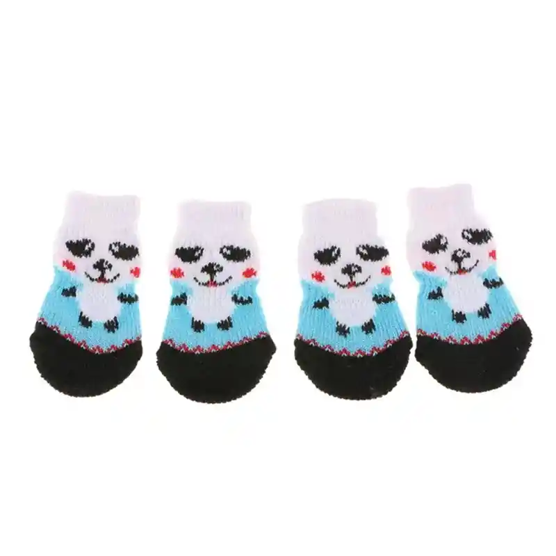 . Estos calcetines para mascotas están hechos de material de algodón, suave y transpirable, elástico y reutilizable. . Fácil de usar: Este protector de patas de perro y gato tiene un diseño antideslizante que proporciona fricción para mantener a tu perro en caídas en interiores. . No son adecuados para todo tipo de gatos y perros grandes, mide cuidadosamente las patas de tu mascota antes de realizar el pedido y elige el correcto, si está entre dos tallas, es mejor elegir el tamaño más pequeño. Especificaciones: Diseño: Osita Dimensiones: 7.5 x 3 cm aprox Contenido: 4 calcetines.
