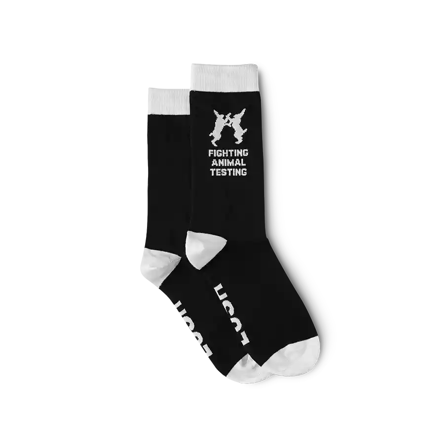 Marca el paso correcto y camina hacia un futuro libre de crueldad. Da un paso adelante y levántate contra el testeo en animales. Este par de calcetines está disponible en dos tallas y se fabricó en Reino Unido en cantidades limitadas con un alto porcentaje de algodón orgánico. Tallas Tallas 35-39: 74% algodón orgánico, 15% poliéster reciclado, 9% nailon, 2% elastano Tallas 40-47 73% algodón orgánico, 15% poliéster reciclado, 9% nailon, 3% elastano.
