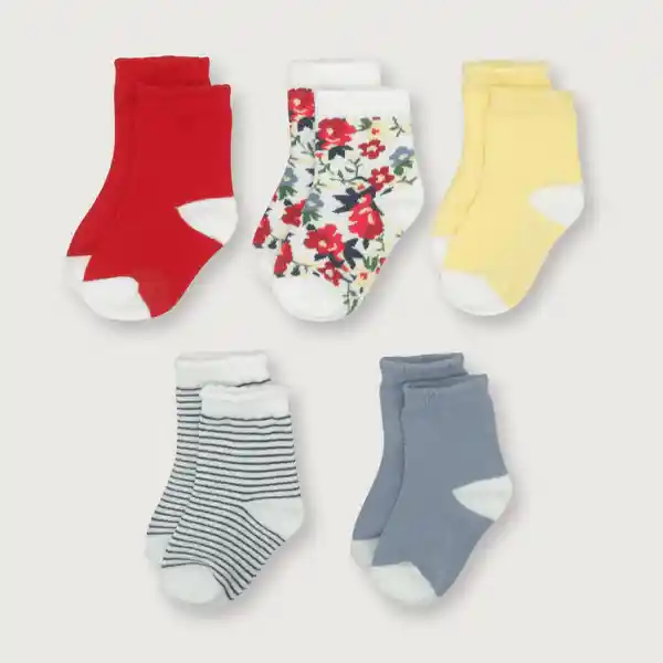 Pack Opaline Contiene 5 Pares. Calcetines Rojo 1 Par + Calcetines Amarillo Claro 1 Par + Calcetines Azul 1 Par + Calcetines Celeste 1 Par + Calcetines Diseño de Flores Todos Con la Punta y el Talón de Color Blanco 1 Par.