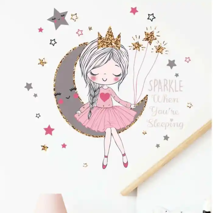Hermoso Adhesivo o sticker decorativo de pared Puede usarse en sala de estar habitación de bebé o niño (a), o donde guste. Impermeable al agua. Características Color: Multicolor Cantidad: 1 pieza Material: PVC Beneficios del Producto: Impermeable Tipo de Estampado: niña en la Luna Medidas producto pegado: altura 83 cm ancho: 61 cm ❤Todos nuestros pedidos van siempre en presentación regalo listos, con una tarjeta para dedicar =) ❤