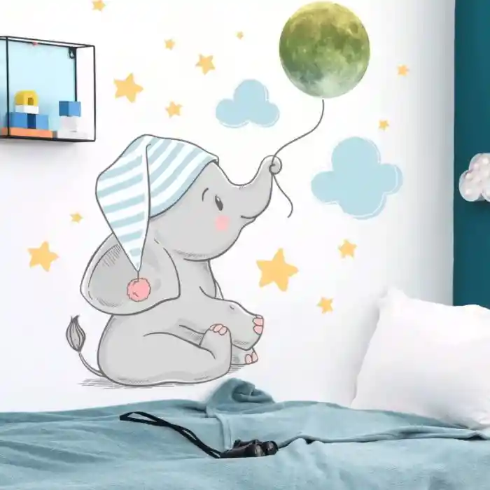 Hermoso Adhesivo o calcomanía decorativo de pared infantil Puede usarse en sala de estar habitación de bebé o niño (a), o donde guste. Impermeable al agua. grueso y de gran calidad! En imágenes puedes ver sus dimensiones una vez pegado! altura: 65 cm. ancho: 95 cm La luna en la oscuridad brilla! dando una claridad tenue a la habitación Características Color: Multicolor Cantidad: 1 pieza Material: PVC Beneficios del Producto: Impermeable Tipo de Estampado: Elefante con luna fluorescente ❤Todos nuestros pedidos van siempre en presentación regalo listos, con una tarjeta para dedicar =) ❤