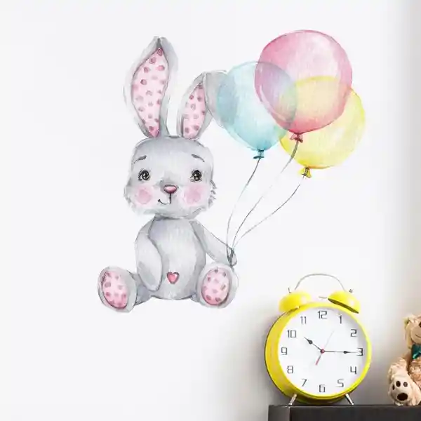 Hermoso Adhesivo o calcomanía decorativa de pared infantil Puede usarse en sala de estar habitación de bebé o niño (a), o donde guste. Impermeable al agua. grueso y de gran calidad! En imágenes puedes ver sus dimensiones una vez pegado! Características Color: Multicolor Cantidad: 1 pieza Material: PVC Beneficios del Producto: Impermeable Tipo de Estampado: conejo con globos de colores tonos pasteles Detalle de tamaño Talla: Unitalla Ancho. 39 cm Largo: 41 cm