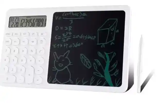 Calculadora 2 en 1 y diseño de tableta de Escritura: la calculadora es una combinación de cálculo y cuaderno con un lápiz óptico, le permite escribir y calcular simultáneamente, por lo que es una herramienta perfecta para profesionales ocupados. Alimentado por batería: la calculadora con función de tiempo está alimentada por 1 CR2032 y 2 baterías LR1130 de la piezas, que ayudan a administrar su tiempo de manera efectiva, asegurando que no se pierda ninguna fecha límite o cita importante. Saludable y ecológica: la calculadora con Bloc de notas no solo es ecológica, sino que también promueve una experiencia de escritura más saludable al reducir la fatiga ocular y la fatiga de las manos asociada con la escritura tradicional en papel y bolígrafo. Conveniente y portátil: es fácil llevar su calculadora con la tableta de escritura sobre la marcha, lo que garantiza que siempre tenga su calculadora y Bloc de notas de confianza con usted. Amplia aplicación: la calculadora básica con tableta la convierte en una herramienta ideal para cualquier persona que necesite realizar cálculos rápidos y precisos, desde estudiantes y profesores hasta profesionales de negocios y contadores. Especificación: Material del producto: ABS Tamaño del producto: 27x17x1,5/1cm-10,62x6,69x0,59/0,39 pulgadas (largo x ancho x Alto) Tamaño de la pantalla: 14,7x14,7x20,3 cm/5,78x5,78x7,99 pulgadas (largo x ancho x diagonal) Dígito: 10 Peso neto: 300g/10,58 oz Batería: 1x3V 200mAh CR2032 + 2x1,5 V 70mAh LR1130 Color del producto: Blanco Tamaño del paquete: 29,3x19,1x2,3 cm/11,53x7,51x0,9 pulgadas (largo x ancho x Alto) Peso del paquete: 522,5g/18,43 oz Lista de embalaje 1 x calculadora 1 bolígrafo de escritura