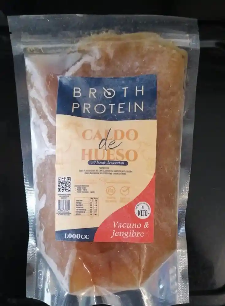 Caldo de hueso preparado con huesos de vacuno de libre pastoreo, traídos desde el sur de chile y verduras, todo esto en 36 horas de cocción. Es Keto y te aporta aporta el mejor colágeno, el mas sano y natural. Ingredientes: huesos de vacuno 100% libre pastoreo y sin antibióticos, Agua filtrada, sal del himalaya, ajo chilote orgánico, apio orgánico, cebolla orgánica, zanahoria orgánica, jengibre. Excelente fuente de colágeno, fortalece el sistema inmunológico, reduce la inflamación, etc. Alimento sin gluten Keto y Paleo friendly 36 horas de cocción 0% azúcar añadida.