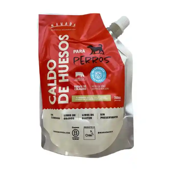 Elaborado con huesos de vacuno Angus criado libre en praderas del sur de Chile, alimentado exclusivamente de pastos naturales (libres del uso de fertilizantes químicos y pesticidas). Respetamos el ciclo de vida del animal sin utilizar hormonas o antibióticos para generar una ganancia en el peso. Snack para mascotas: Sin saborizantes ni preservantes. Sin Sal. Libre de Granos. Hecho con huesos de animales de libre pastoreo. Cocción lenta para extracción de colágeno. Se puede combinar con alimento deshidratado. Previene alergias Ingredientes: Agua blanda, huesos de vacunos regenerativos sin hormonas o antibióticos y vinagre. FORMATO: 250 cc Duración 24 meses desde fecha de envasado.
