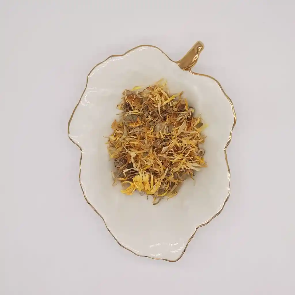 La caléndula es una de las hierbas más conocidas y más versátiles de la medicina herbácea. Sus pétalos de color naranjo son una excelente hierba depurativa y desintoxicante. Ayuda a desórdenes digestivos, como la gastritis, úlceras pépticas y colitis. También posee una acción estrógena suave por lo que se suele emplear para disminuir el dolor del periodo y regular la menstruación.