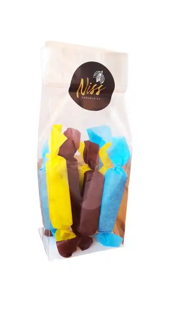 Calugas realizadas con chocolate 31, 35, y 56% de cacao, acompañadas con unos sanos y deliciosos frutos secos. Cranberries, nueces y almendras. Los sabores son surtidos.