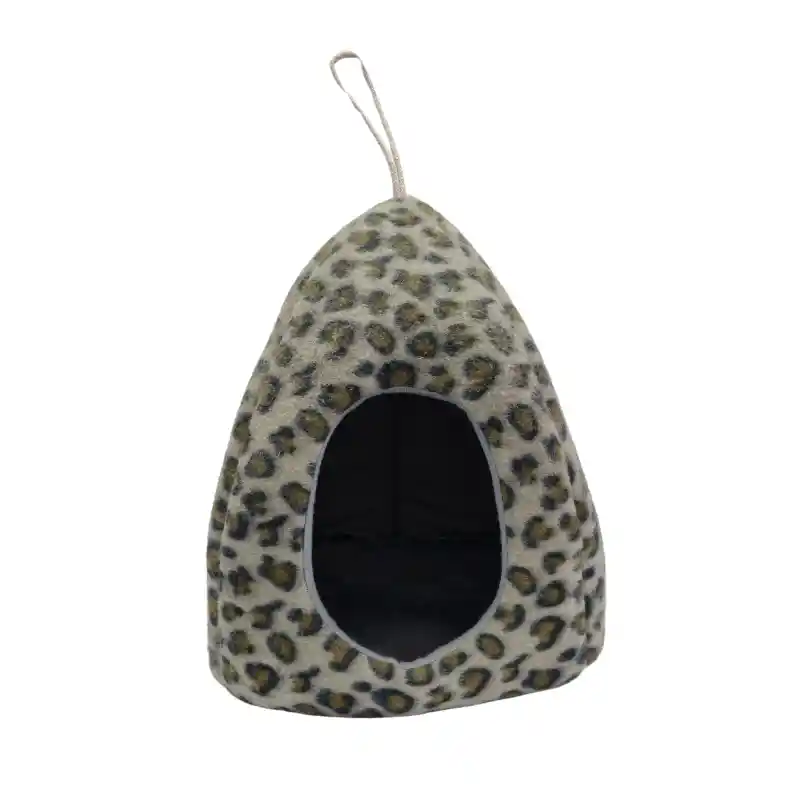 . Cama en forma de iglu para perros, gatos o pequeñas mascotas como conejos pequeños, cobayas, hurones, chinchillas y erizos. . Suave, cálido y cómodo. . Su forma de cueva le proporcionará a tu peludito, un espacio donde se sentirá cómodo y protegido en sus horas de descanso. Especificaciones: . Material: Poliester / Polar. . Diseño: Animal Print . Talla: S . Dimensiones: 30 x 25 cm aprox. . Contenido: 1 Cama.