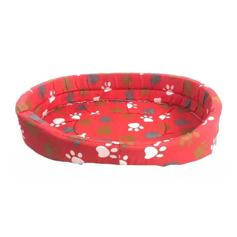 . Cama ovalada para perros, gatos u otras mascotas chicas. . Suave, cálido y cómodo. Especificaciones: . Material: Poliéster. . Diseño: Patitas . Color: Rojo . Dimensiones: Talla XXS: 29x19x6 cm aprox . Contenido: 1 Cama.