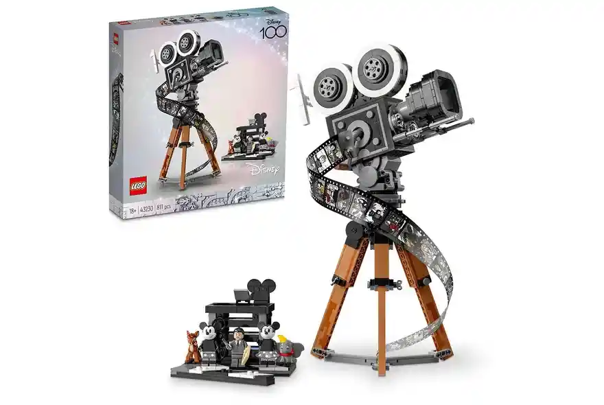 Muéstrale al mundo tu pasión por el universo Disney con el vistoso set para adultos LEGO® | Disney Cámara en Homenaje a Walt Disney (43230). Esta detallada pieza de colección se compone de una “cámara” de cine clásica con panel posterior abisagrado y una sorpresa en el interior, acompañada de una tira de película con fotogramas de 20 históricas películas Disney y una claqueta de director con espacio para 3 minifiguras LEGO | Disney, 2 figuras LEGO de animales y una cámara multiplano con 3 pantallas impresas sobre la creación del cortometraje Disney El viejo molino. La cámara de cine del set, como las de antes, cuenta con manivela móvil, portafiltros deslizante y lentes que se pueden girar, y la claqueta tiene una barra inferior articulada. Celebración en homenaje a Disney Este excepcional set LEGO | Disney, creado con motivo del 100 aniversario de Disney, incluye 2 populares personajes, 2 reconocibles animales de icónicas películas Disney y una minifigura LEGO | Disney de Walt Disney. • Disfruta creando: Estimula la imaginación de un fan del universo Disney de 18 años o más y alimenta su pasión regalándole el set LEGO® | Disney Cámara en Homenaje a Walt Disney (43230). • Construye y expón: Este set lleno de recuerdos se compone de 811 piezas que darán forma a inconfundibles objetos, como una cámara de cine clásica y una claqueta de director con cámara multiplano. • Emblemáticos personajes: El set incluye 3 minifiguras LEGO® | Disney (Disney Mickey Mouse, Minnie Mouse y Walt Disney), junto con figuras LEGO de animales (Bambi y Dumbo). • Modelo creativo: Cualquier fan de Disney o del cine podrá disfrutar de este desafiante modelo repleto de detalles. Crea una pieza de exposición totalmente única con la icónica cámara de cine, la claqueta, la cámara multiplano y los personajes. • Clac y… ¡acción!: La cámara de cine mide aproximadamente 37 cm de altura, 21 cm de anchura y 19 cm de profundidad. Por sus dimensiones y los objetos que la acompañan, es una pieza de exposición magnífica para reflejar tu mayor afición. • Guía de construcción digital: La app LEGO® Builder incluye una versión digital de las instrucciones de construcción que trae el set. • Instrucciones ilustradas: Este singular set viene con un cuidado folleto que contiene información sobre Disney, la cámara y el propio set, además de instrucciones para guiarte durante el proceso de construcción. • Calidad sin concesiones: Desde 1958, los componentes LEGO® cumplen estrictas normas del sector para garantizar que siempre se conecten perfectamente. • La seguridad es lo primero: Los componentes LEGO® se dejan caer, se calientan, se aplastan, se retuercen y se analizan para verificar que satisfacen rigurosos estándares mundiales de seguridad.
