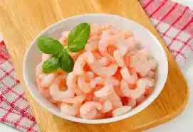 Bolsa de camarones cocidos y pelados calibre 100/150, contiene 1 kilo de peso bruto, producto congelado y envasado.