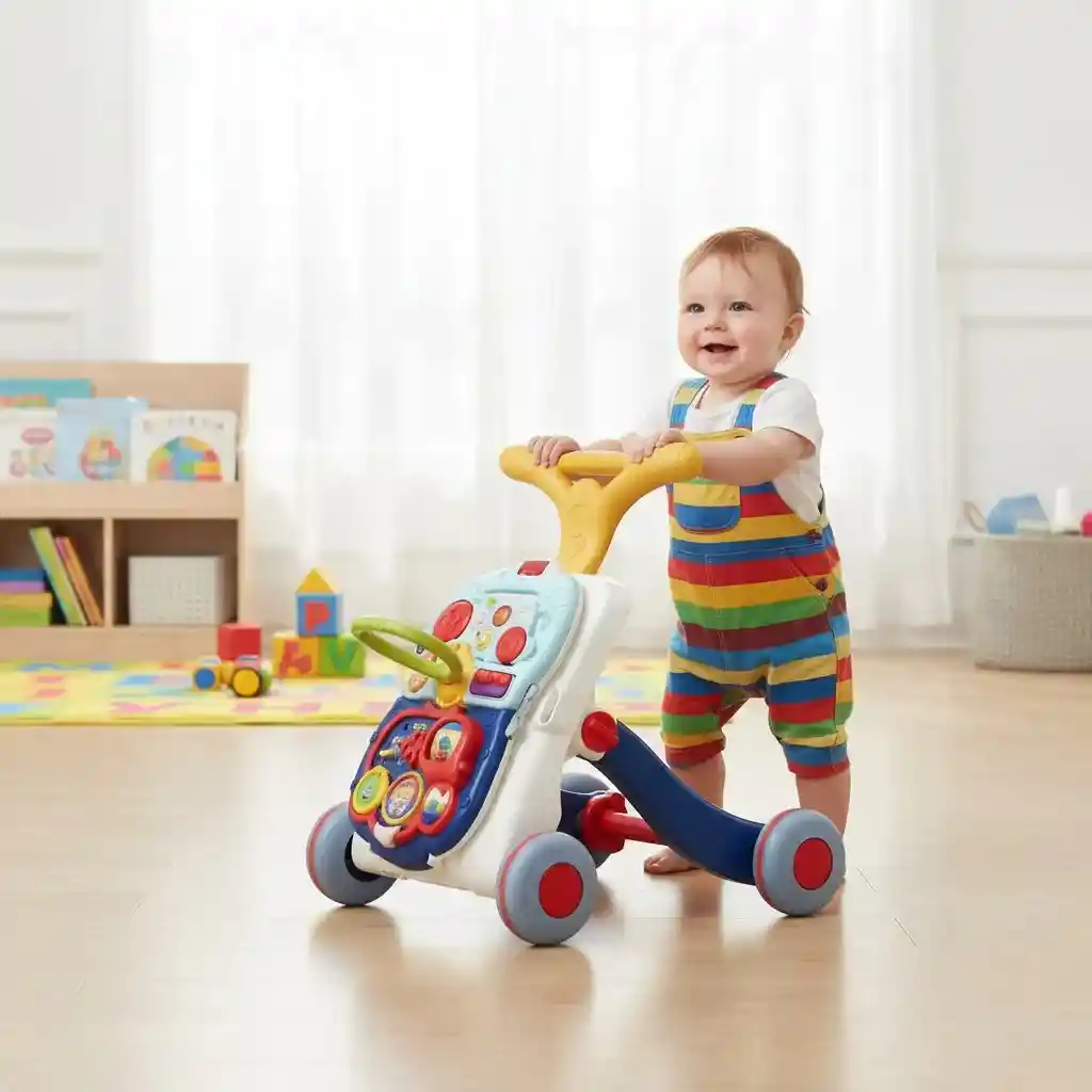 Descripción Este divertido andador 3 en 1 que se puede ocupar como caminadora, tablero de música y luces que puede desmontar y también una mesa de juego, ayuda a tu bebé a dar sus primeros pasos. Además tiene diferentes y divertidos juegos que aparte de ayudar a tu bebe a caminar lo ayudaran a desarrollar otros sentidos como la vista con sus colores, el tacto con sus texturas, la audición con sus sonidos y la motricidad con sus juguetes. la forma y estructura de Triángulo del caminador puede ayudar al bebé a mantener el equilibrio del cuerpo para formar el camino correcto postura. Además las ruedas traseras de goma son antideslizantes para dar mayor seguridad al bebé, a igual que la banda de agarre. Trae diferentes juguetes los cuales también pueden sacarse del andador y ser utilizados de manera aparte.