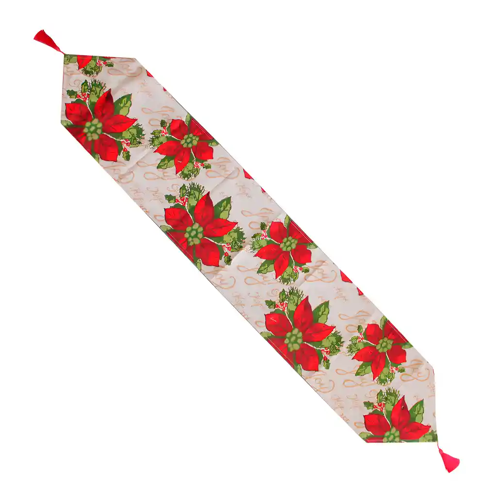 Camino de Mesa Navideño Flores Rojas Decorativo 180x35 CM Este camino de mesa navideño es una opción ideal para añadir calidez y estilo a tus celebraciones. Su diseño con estampado de grandes flores rojas y detalles inspirados en banderines lo convierte en una pieza llamativa que aporta color y alegría a la decoración de tu mesa durante las fiestas. Fabricado con materiales resistentes, es duradero y soporta bien el uso diario. Gracias a su tela de alta calidad, este camino de mesa es cómodo al tacto, fácil de limpiar y mantiene su apariencia impecable, ya que resiste tanto las arrugas como las manchas. Además, no pierde color con el tiempo, lo que lo convierte en una inversión decorativa reutilizable año tras año. El estilo moderno con un enfoque sencillo y elegante lo hace perfecto para combinar con una gran variedad de estilos de vajilla y decoración. Es una forma efectiva de transformar tu mesa en un punto central navideño sin necesidad de recargar el ambiente. No solo es ideal para Navidad, sino también para celebraciones como cenas familiares, bodas, reuniones y otras ocasiones especiales. Añade un toque refinado que realza el entorno sin perder el espíritu festivo. Su estética encantadora, junto con su practicidad, lo convierte en una pieza indispensable para quienes buscan una decoración navideña útil y decorativa. Este camino de mesa no solo cumple una función estética, sino que también protege la superficie de tu mesa, fusionando belleza y funcionalidad en un solo producto. Especificaciones: Color: Beige con Rojo. Tamaño: 180 cm x 35 cm. Material: Tela. Paquete incluye: 1 camino de mesa.